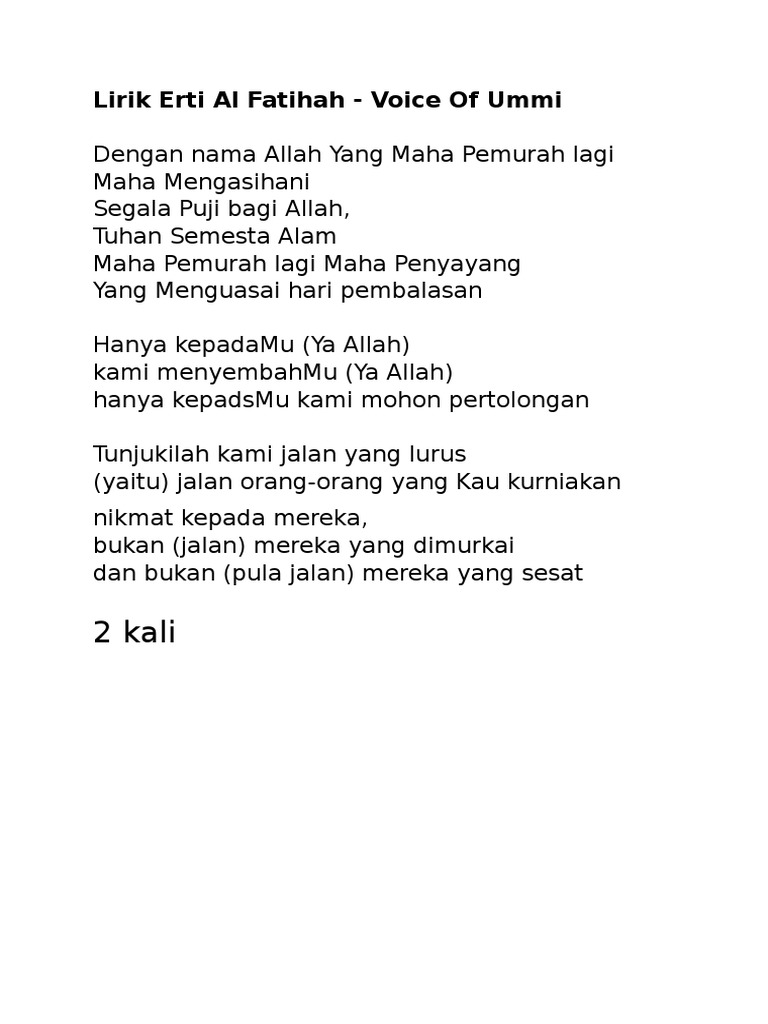 Surat al fatihah beserta artinya per ayat surat al fatihah adalah surat pertama di dalam al qur'an disebut juga surat pembukaan.